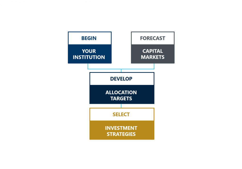 With objectives and allocations clear, the process for selecting specific investment strategies takes shape. Those decisions are influenced by liquidity considerations, regulatory and reporting concerns, and traditional factors such as cost, risk, volatility, income production, and confidence.