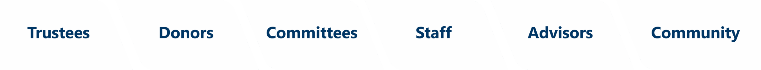 - To start, we discuss with and/or survey key stakeholders (Board, Committee, Staff) regarding topics such as: objectives, strategic priorities, business risks, use of funds, anticipated changes, values, and governance.